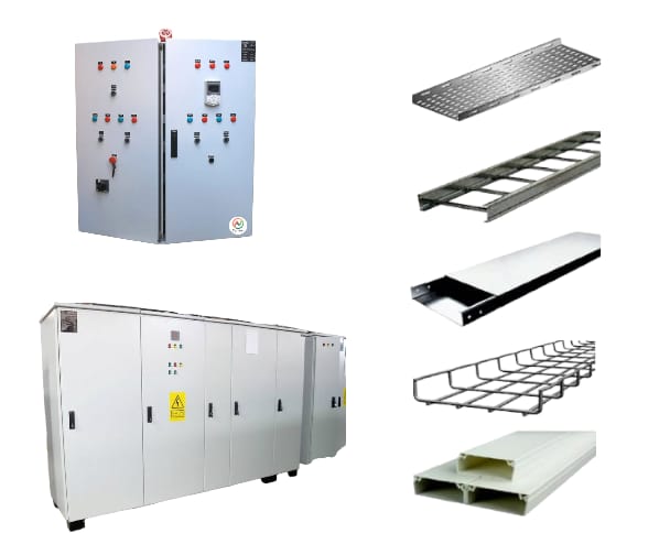 Supply and installation of all types of cable trays, sheet metal and stainless steel (cable tray – cable trunk – cable ladder – mesh) all sizes are available, cold galvanized and hot galvanized, as well as supplying and installing all electrical panels and all their internal components such as power distribution panels, power factor improvement panels, ATS panels for generators and machine control panels.